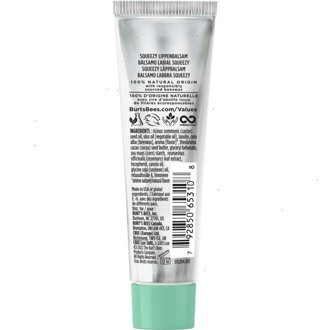 A true treat for happy lips! Burt's Bees® Squeezy Lip Balm provides a hint of healthy looking shine in each flavor. Simply squeeze to moisturize and nourish your lips with just the right amount of shine. With a 100% natural origin formula, this sheer lip balm is enriched with responsibly sourced beeswax and hydrating cocoa butter. Use this naturally derived makeup as a lip tint base or on its own.